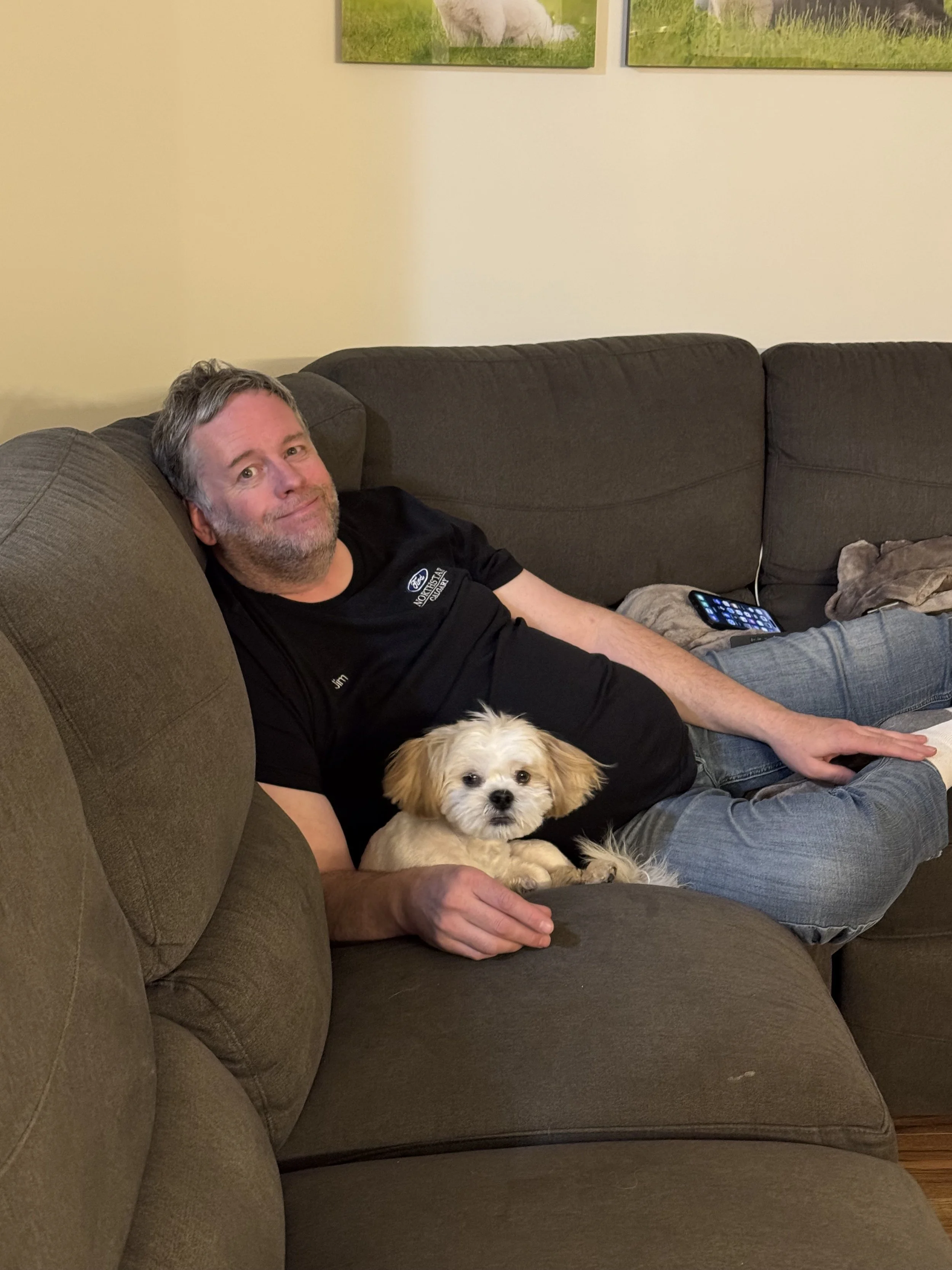 Jimmy - You cause most of my stress, but you also feel like home. For the love of god pick up your feet when you walk and chew quieter, love you.