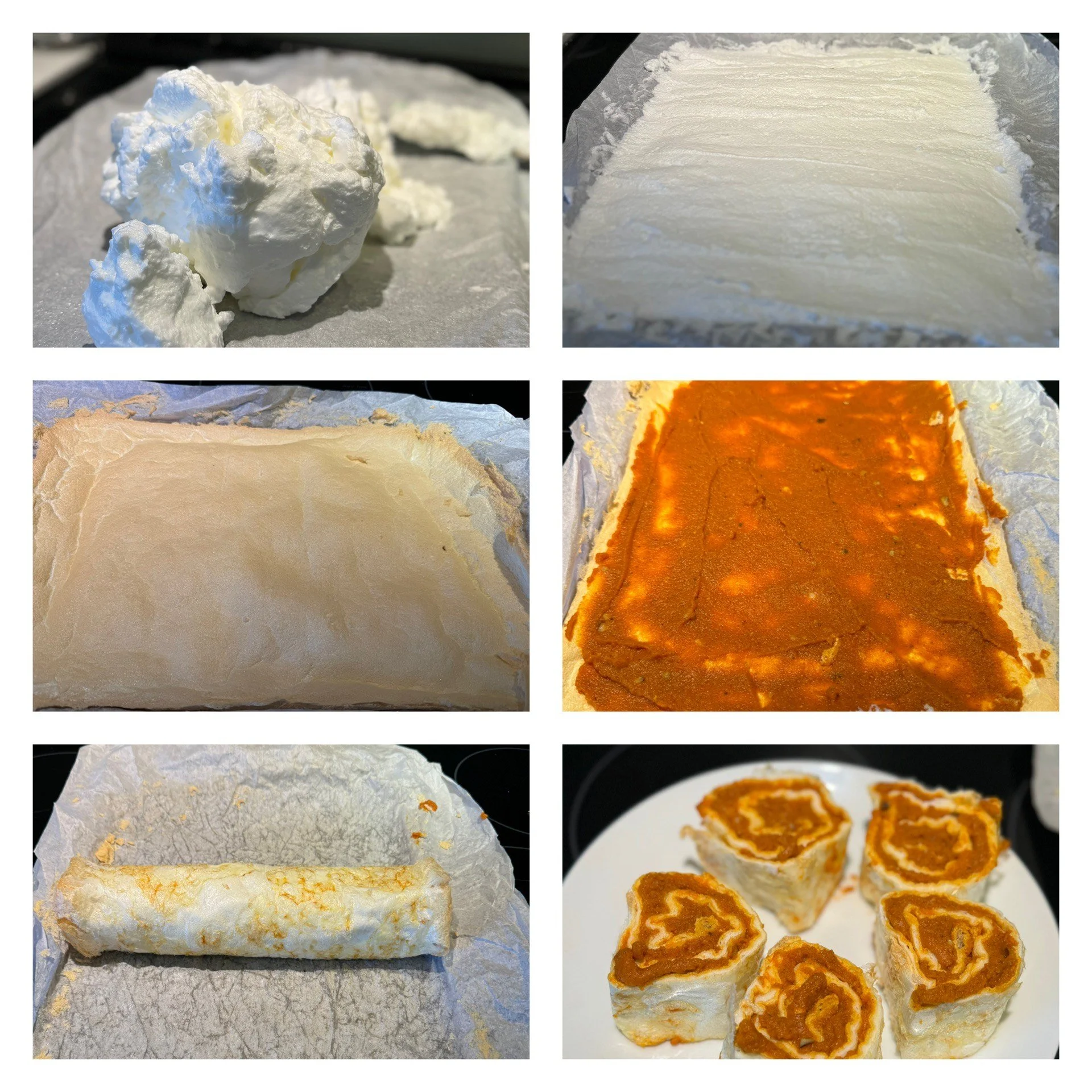 Carefully start to roll the egg white length wise. You may need to use the parchment to help your roll stay together